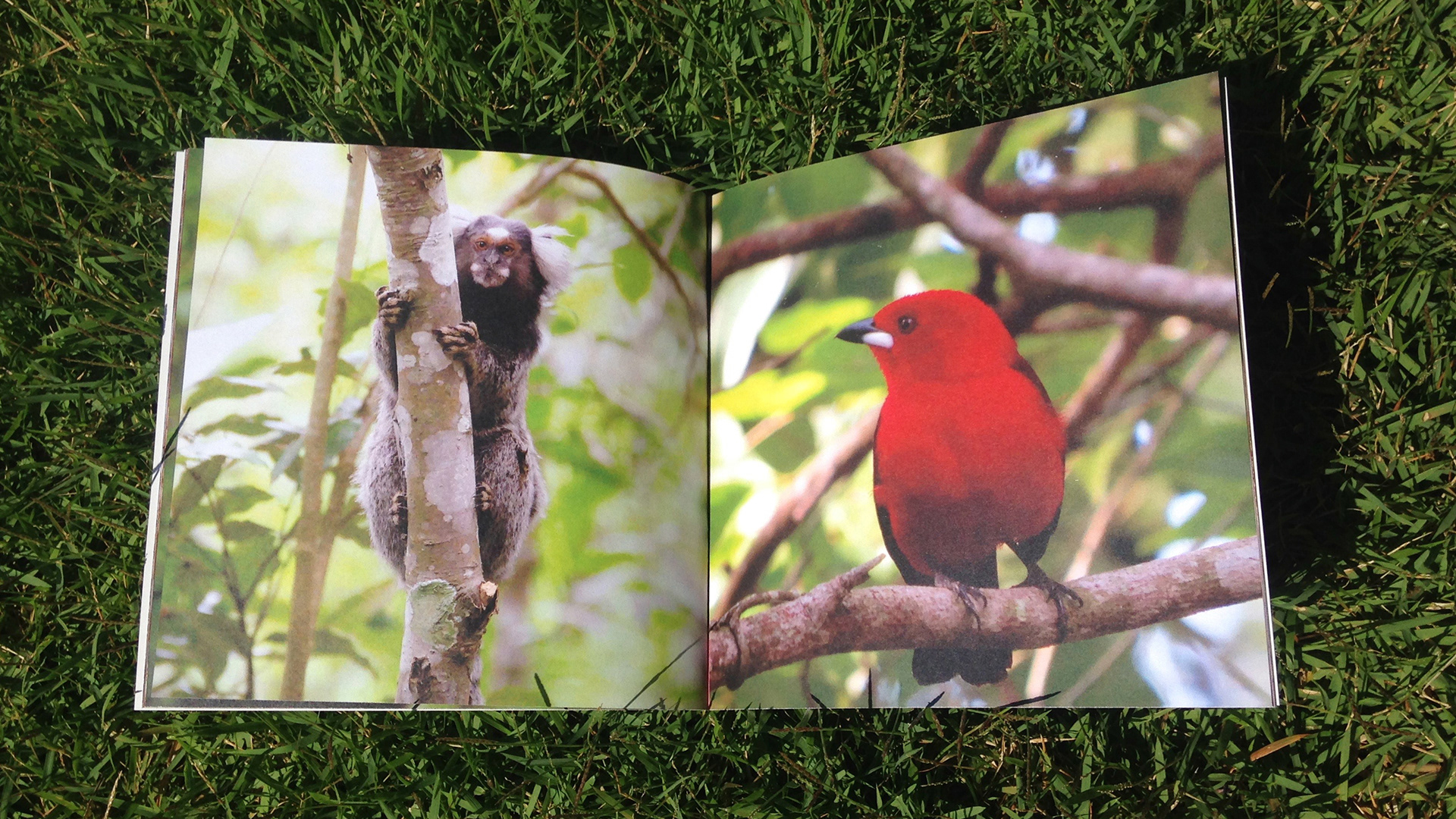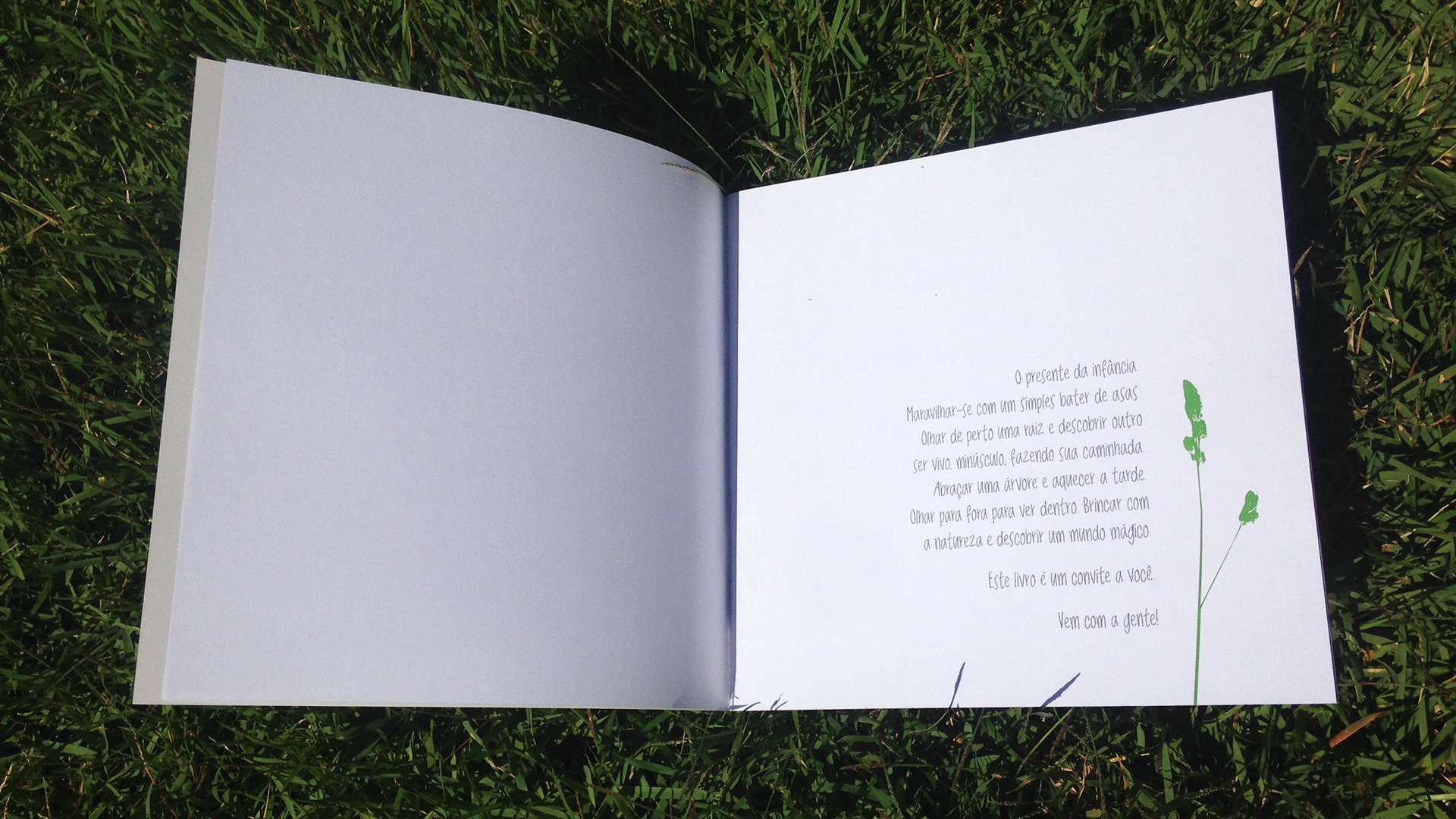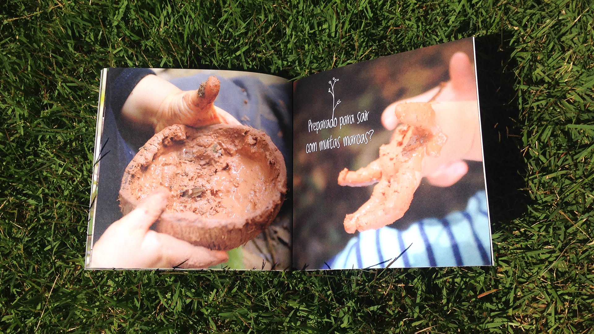 Livro fotográfico que convida crianças para interagir com a natureza.